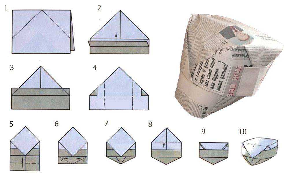 Если нет времени для изготовления сложных моделей, можно быстро сделать аккуратную пилотку. Для этих целей подойдет газета квадратной формы. Ее сторона должна быть равна объему головы с припуском в 2 см. Алгоритм действий: