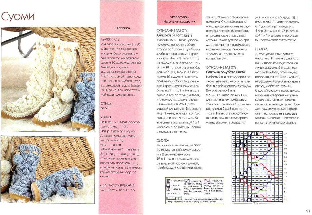 схема и описание вязания спицами сапожек