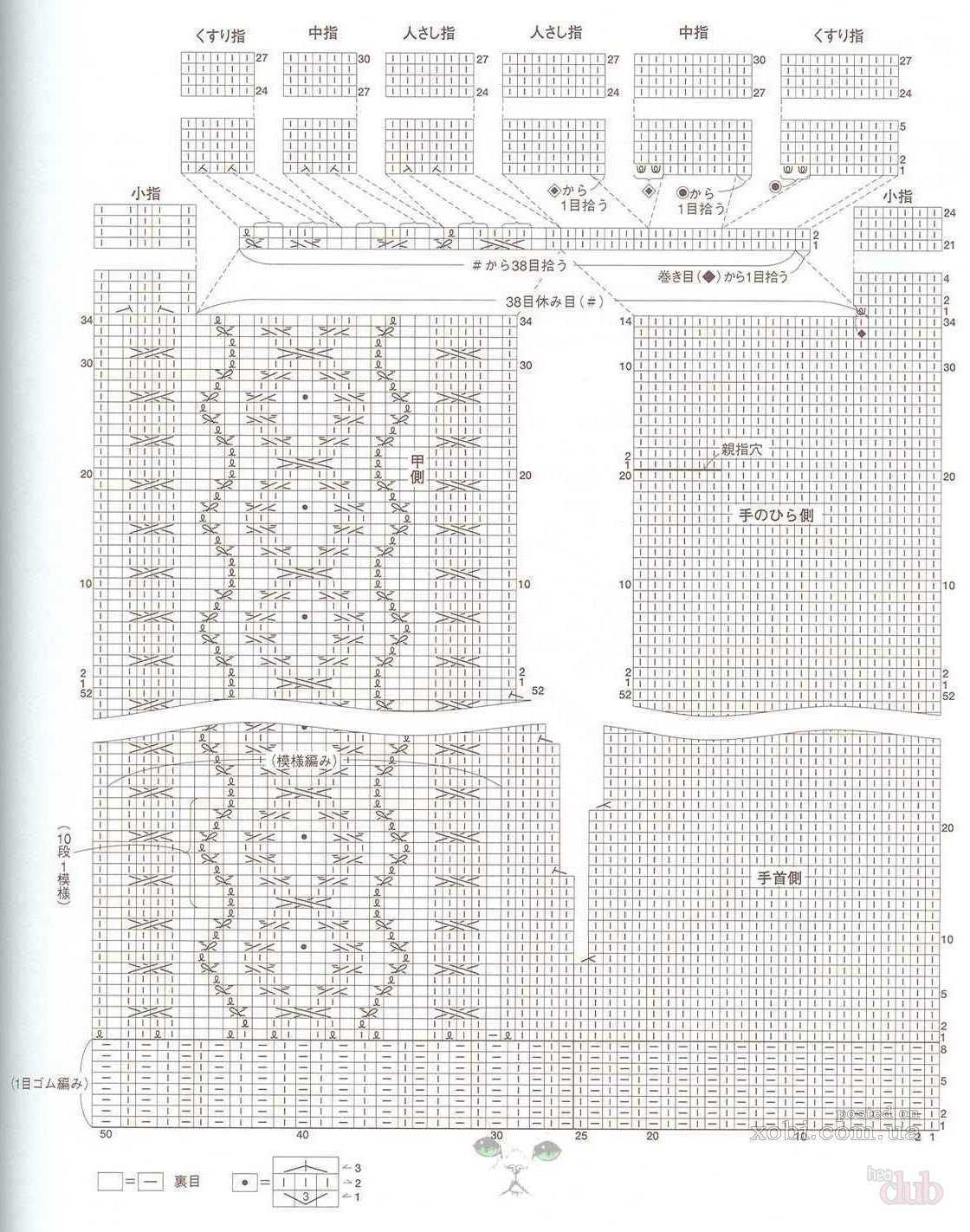 Схема перчаток с определением деталей и порядок работы смотрите на картинке ниже.