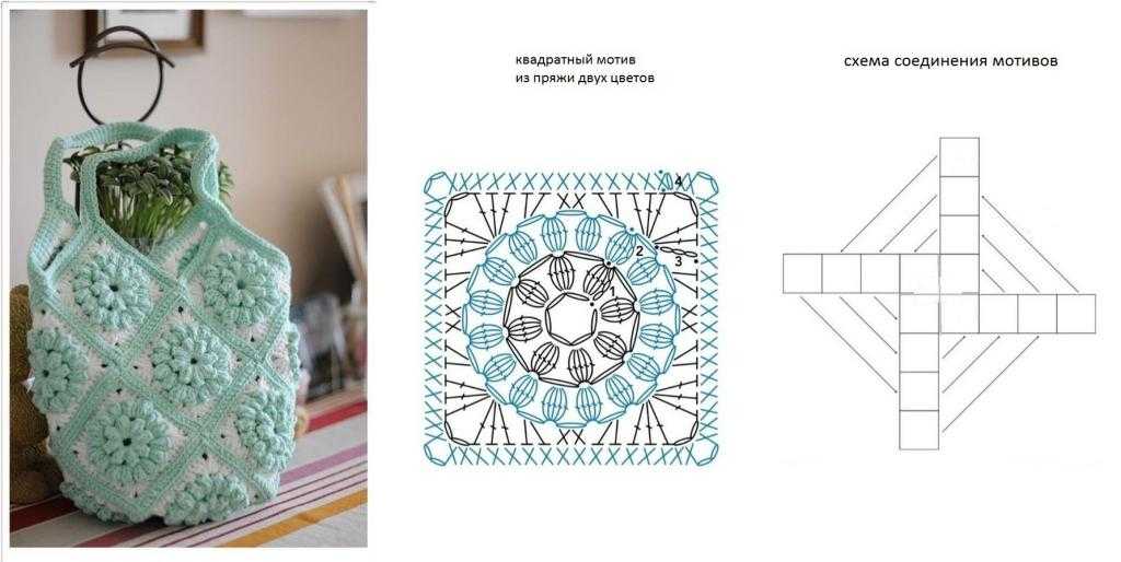 Описание и схемы вязания сумки крючком