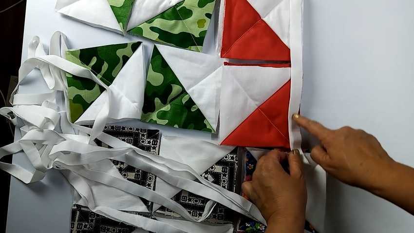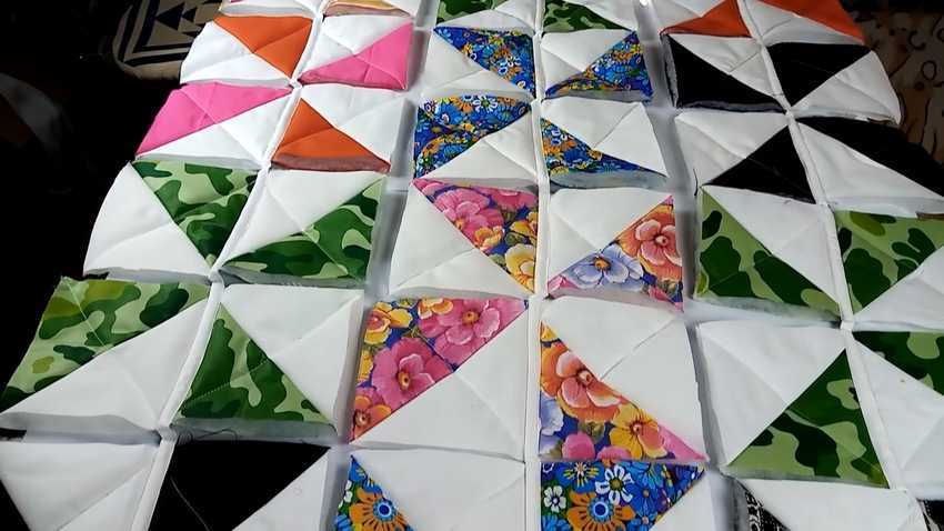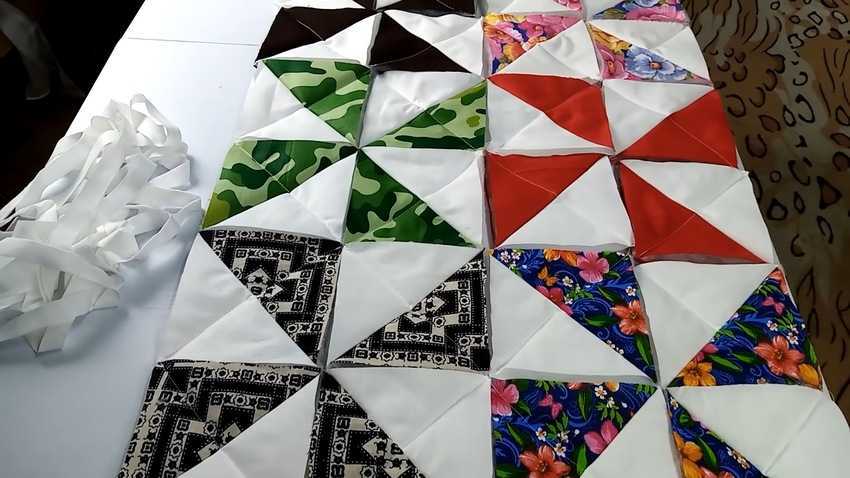 - треугольники – чтобы достичь по окончании ровного квадратного полотна, такие лоскуты вырезают в виде равнобедренных треугольников;