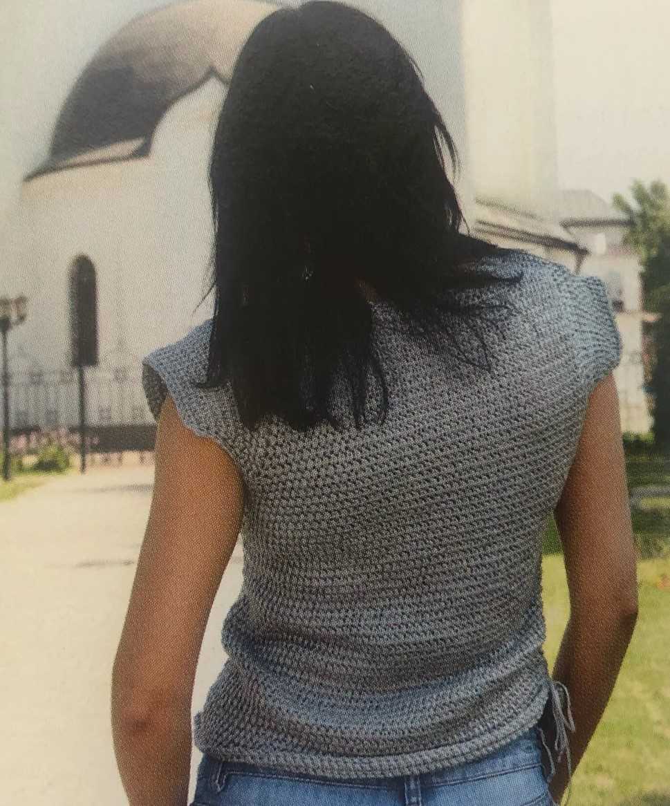 Спинка вязаного топа может быть открытой или иметь более открытый участок, чем спереди. На спинке дополнительно вяжутся лямочки для фиксации положения. Это хорошо в любом случае, будь то пляж, вечеринка или даже на работе.