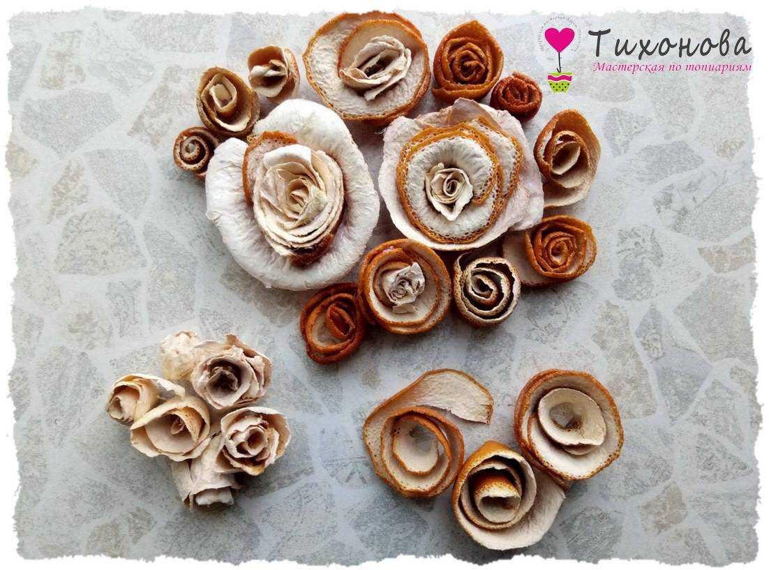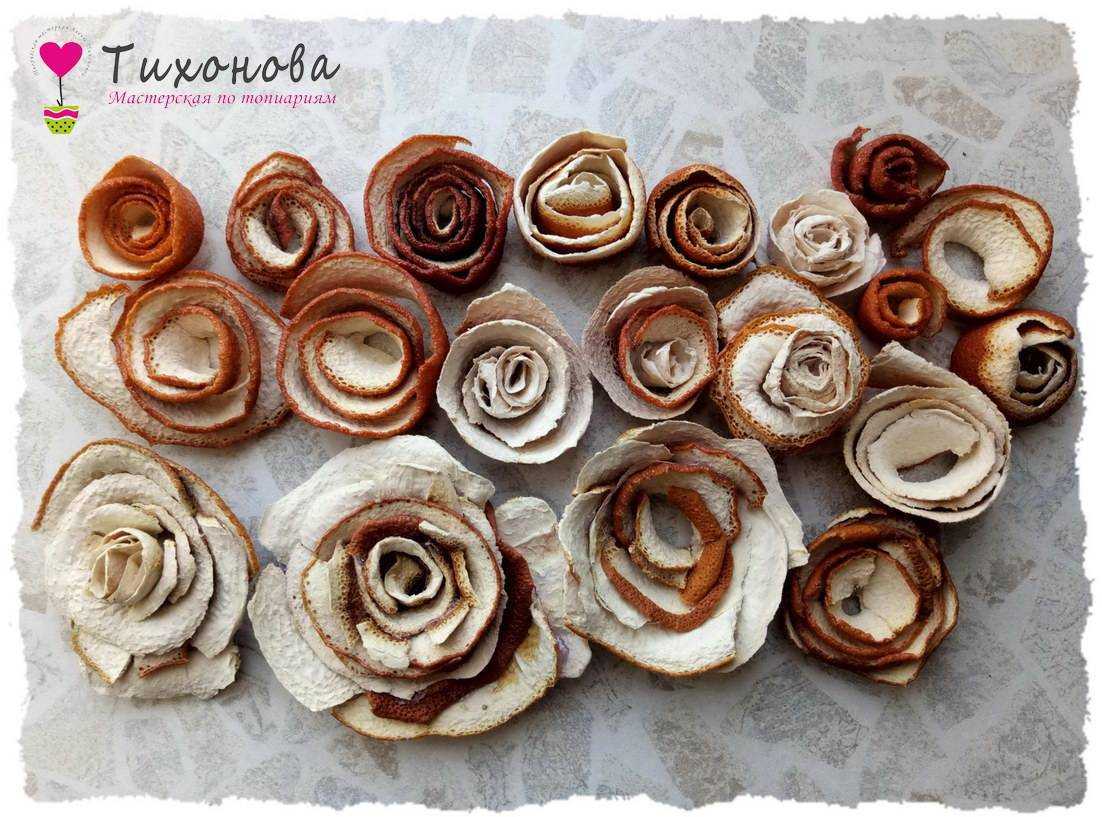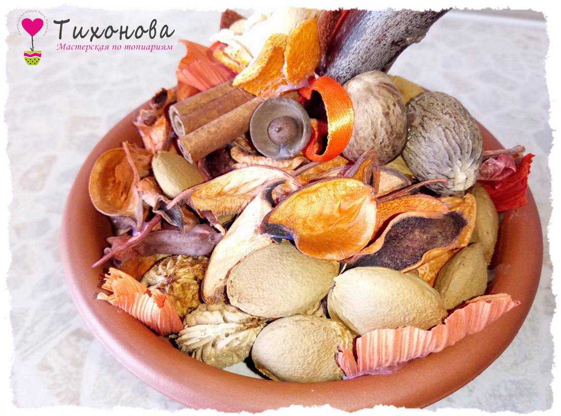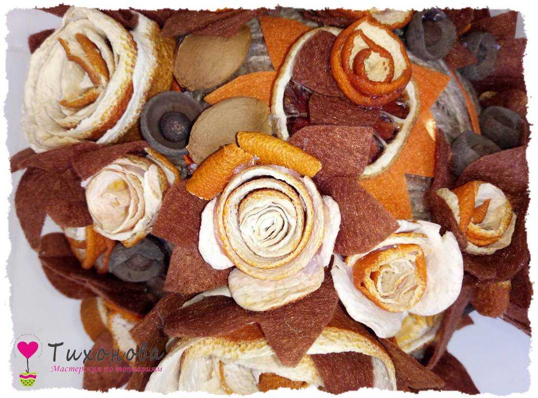 Все вышеперечисленное априори сочетается между собой, и при минимальных умениях используется для создания: осенних букетов из природных материалов, панно, венков, топиария.