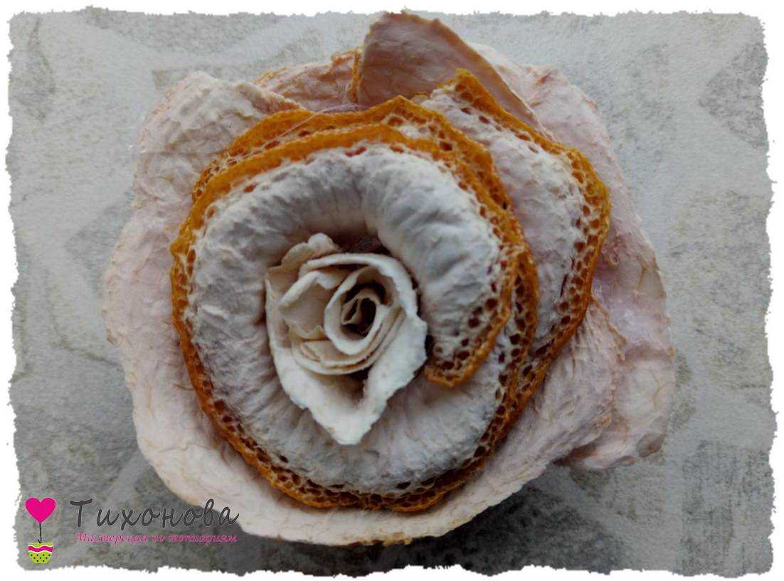 - Когда изготовите красивую розу, туго скрепите ее, используя проволоку или нитки.