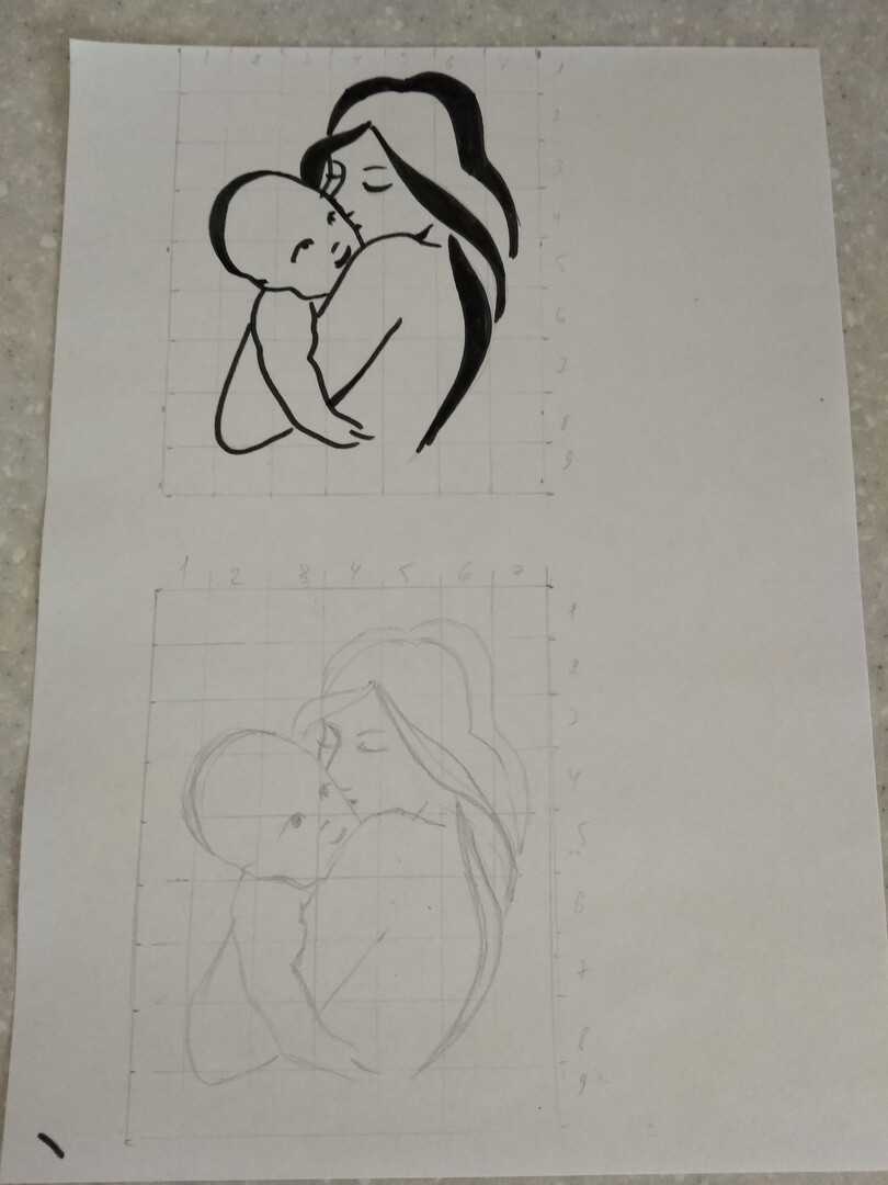 Рисуем маму с ребенком на руках по клеточкам (сетка)