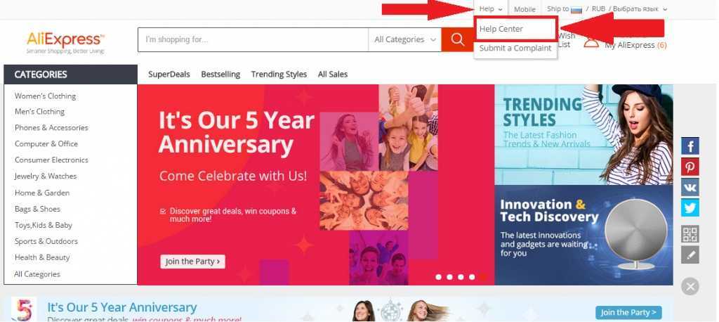 - зайти на русскоязычную версию aliexpress и выбрать соответствующие меню;