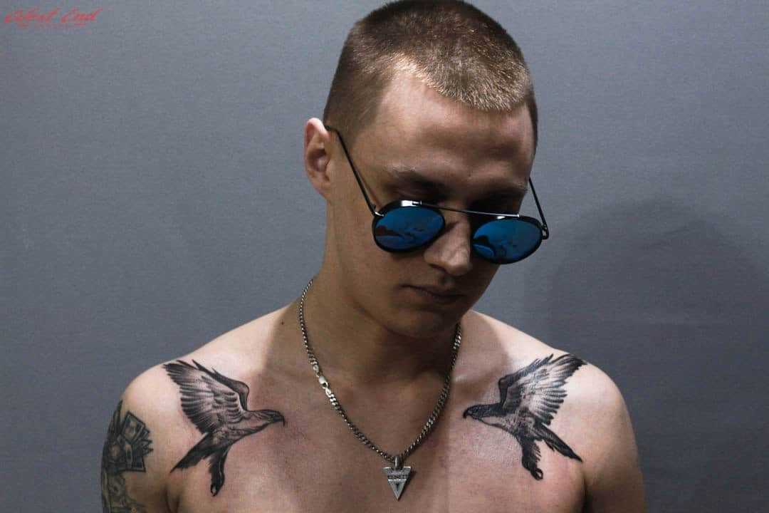 Сбоку шеи – здесь помещаются маленькие, но крутые наколки, что могут плавно переходить на другие части тела или сливаться с рукавом на руке.