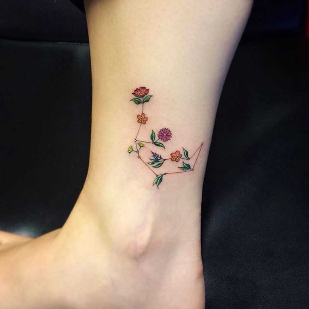 Самым известным изображением на щиколотке является растительный орнамент или цветок. Он выглядит привлекательно вне зависимости от тела и представляет собой внутреннюю гармонию, хрупкость и нежный характер владельца. Также значение можно интерпретировать в зависимости от выбранного цветка: