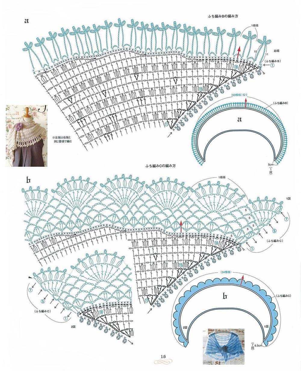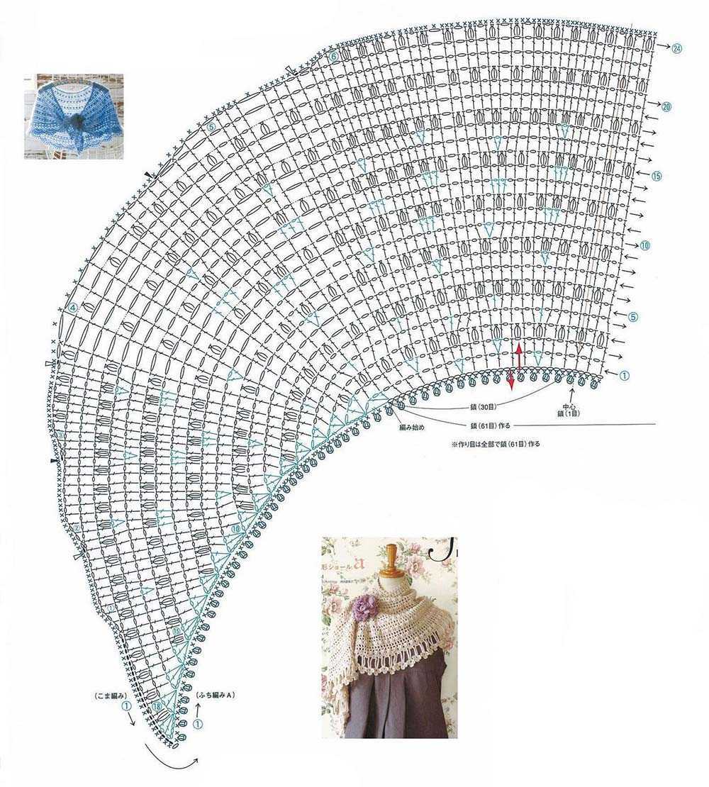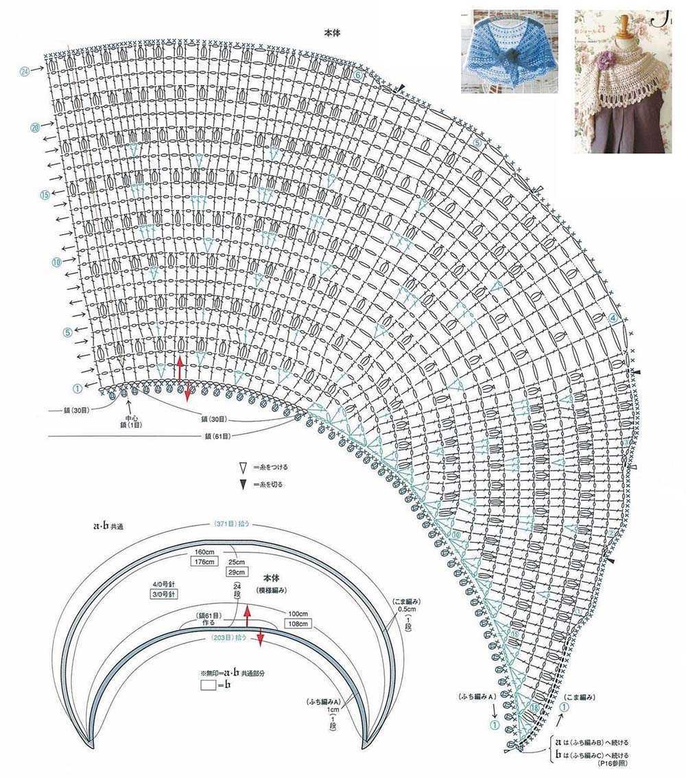 Сразу стоит заметить, что первая, третья и четвертая схемы, приведенные выше, более простые и подойдут скорее для обвязки платья, кофты, салфетки, скатерти, возможно — портьер. Вторая схема – более сложная. Подобного рода обвязка может быть использована для стильного кардигана.