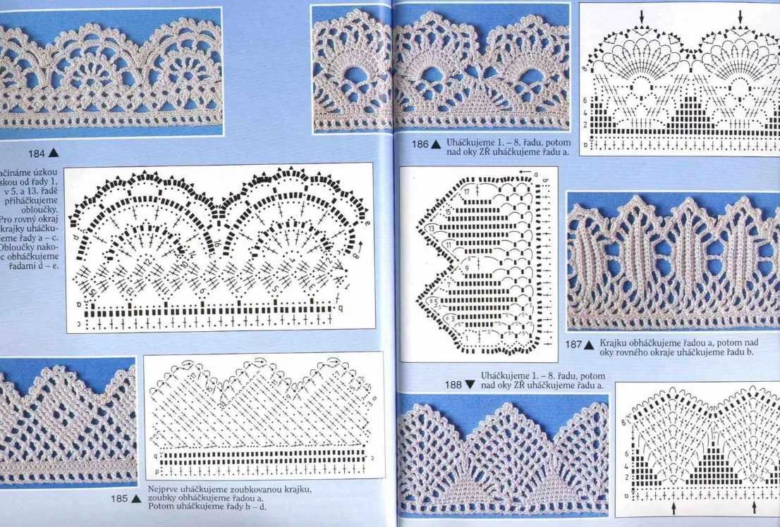 Подробнее можно увидеть на схеме ниже. Применяйте разнообразные варианты кружев. Схемы представлены на фото ниже.