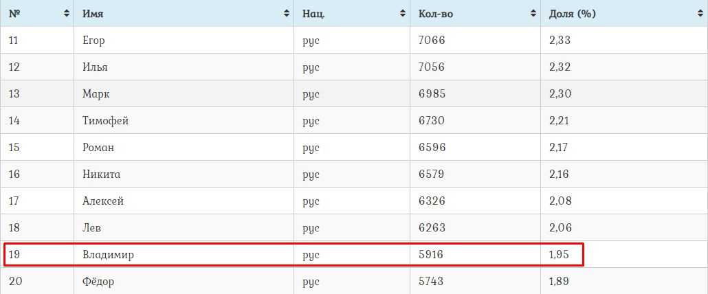 Популярность имени Владимир