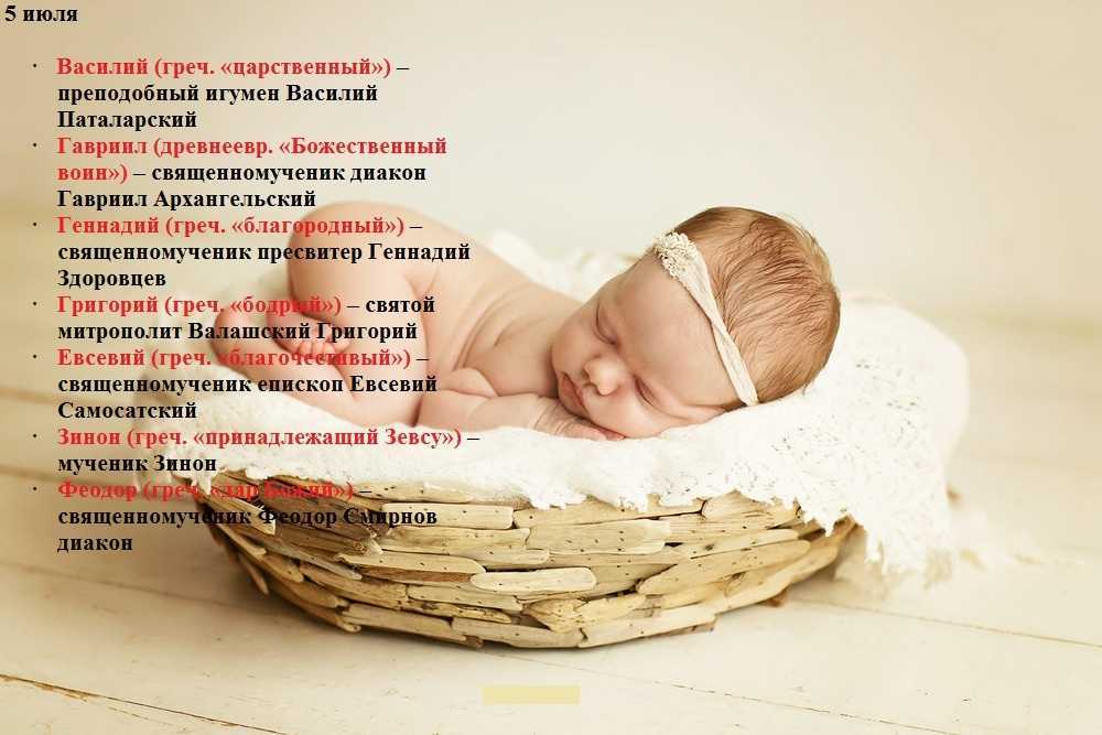 | 5 июля | Василий, Гавриил, Геннадий, Григорий, Федор |