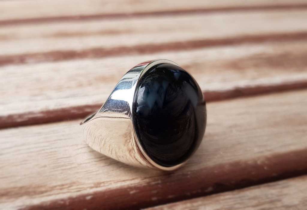 Используют оникс и для изготовления колец. Он может служить вставкой, а иногда изделие полностью вырезают из камня. Есть варианты и для женщин, и для мужчин. Минерал хорошо смотрится в золотой или серебряной оправе, может быть дополнен бриллиантами, фианитами.