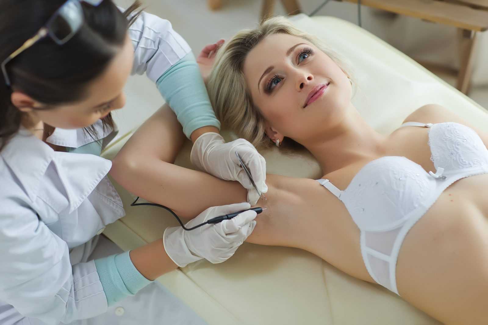 По эффективности это, пожалуй, пока лучшая эпиляция из всех. Специальная игла вводится на большую глубину, проникая в волосяной фолликул. После чего он подвергается разряду электрического тока и разрушается. Косметолог пинцетом убирает мертвый волос. Если все делается правильно, он удаляется легко, без усилий.