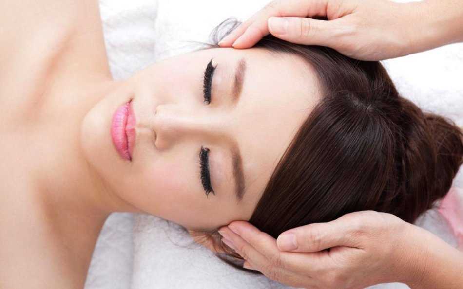 - В зоне лба процедура проводится при помощи трех пальцев (среднего, указательного и безымянного), которые нужно плотно прижать к центральной части лба, и спустя три секунды плавно отвести к вискам, не прекращая надавливание. Достигнув цели, ладони поворачивают на 90 градусов, проводят их вниз.
