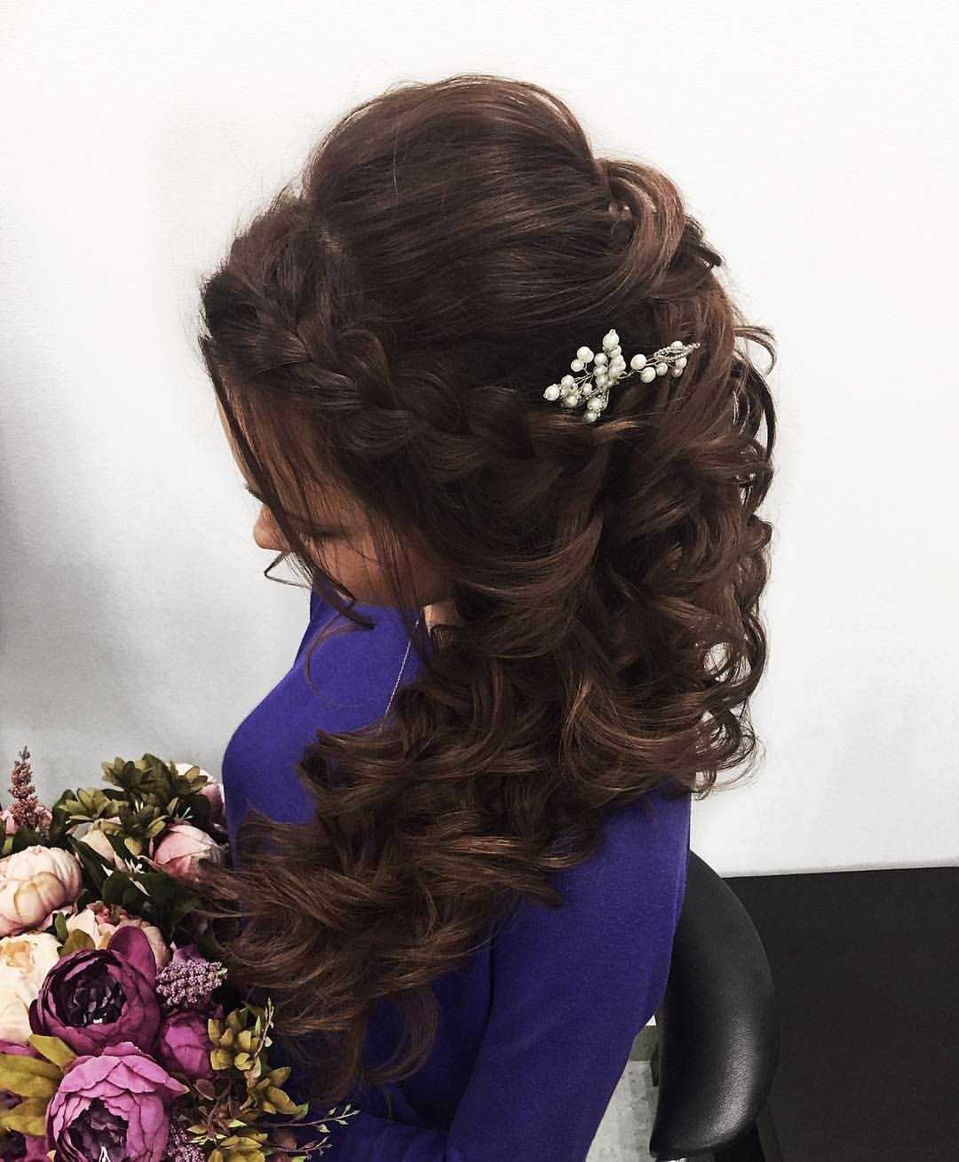 - Уложить передние пряди, заводя их назад и фиксируя на косе из локонов.