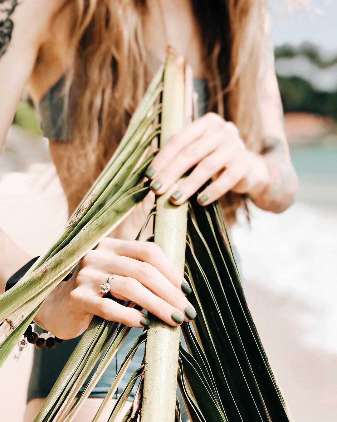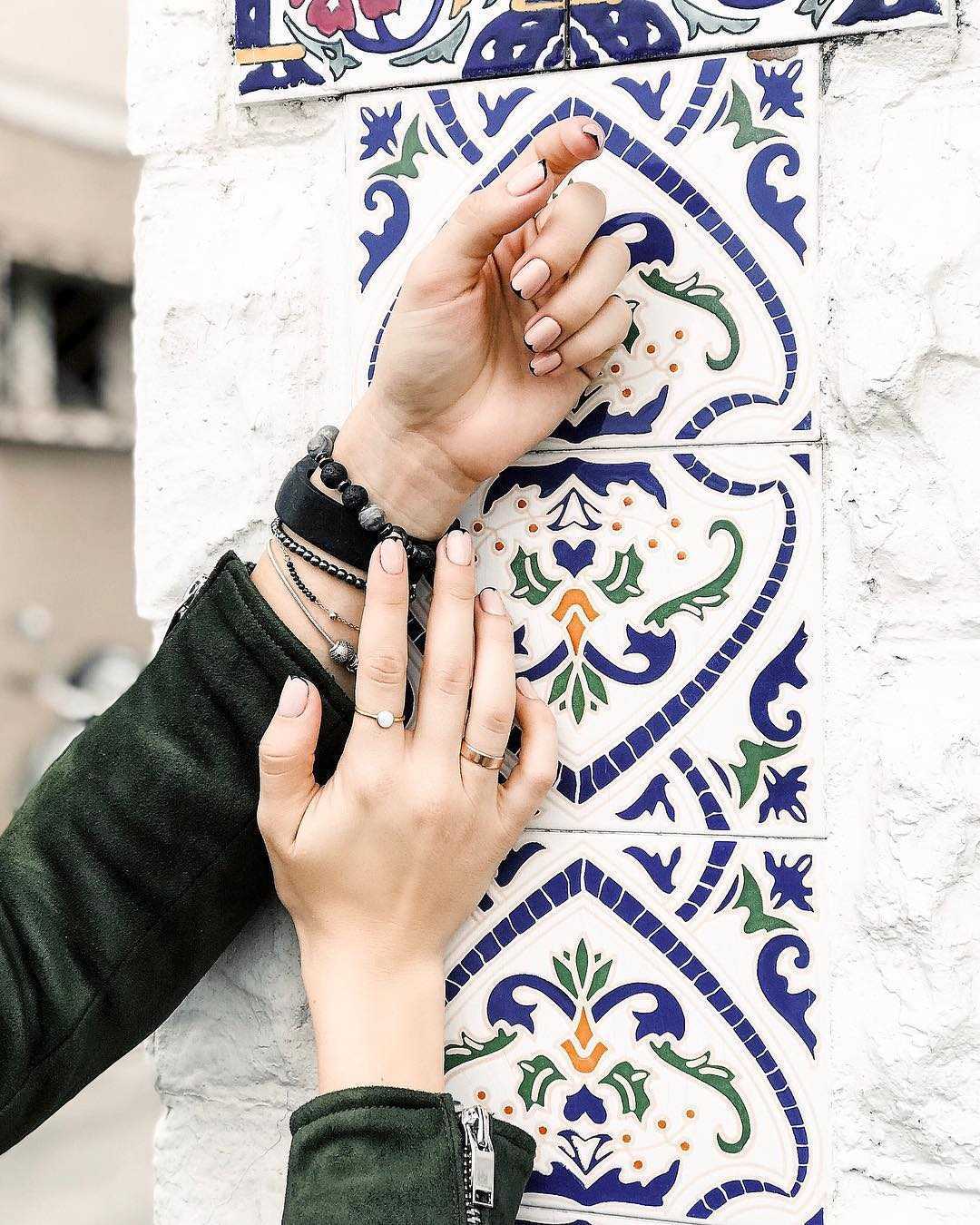 Очень удачной идеей может стать съемка женских рук в мужских. Даже реквизит не понадобится – нужно просто уложить изящную женскую кисть с красивым маникюром в сильную мужскую ладонь (потребуется помощь друга-мужчины). Выбор хэштегов очень широк: #love, #mylove, #lovenail и многое другое.