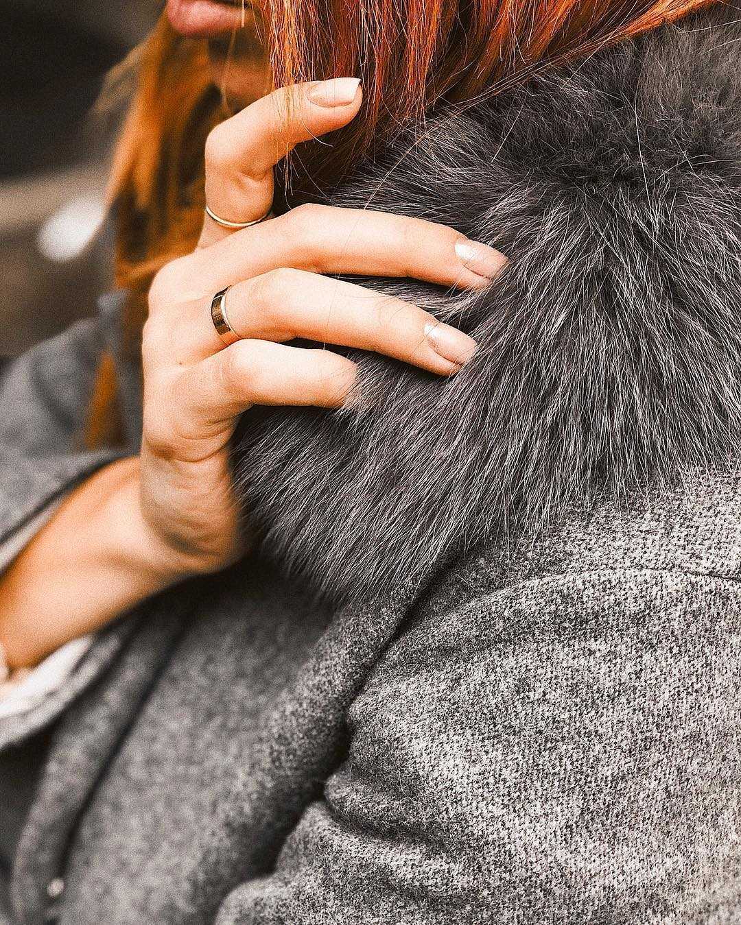 - пальцы на воротнике пальто, на пуговицах жакета, сжимающие тонкий шарф;