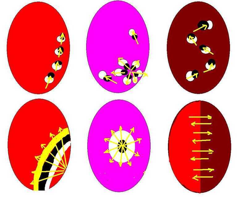 Теперь, будьте быстрой, прежде чем верхний слой высохнет. Сделайте несколько капель на ноготь лаком нужных цветов, и перемещайте иглу на поверхности в форме «8», в виде горизонтальных или вертикальных линий. Схемы рисунков по созданию рисунков с помощью иголки на ногтях приложены к уроку.