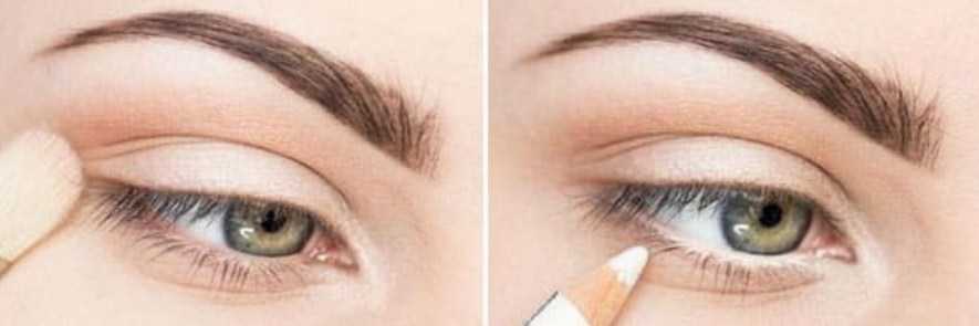 Базовое средство под тени — то без чего невозможно обойтись, если у вас впалые глаза. Без основы тени быстро скатаются, и макияж будет испорчен. База наносится на всю область от ресниц, до бровей.