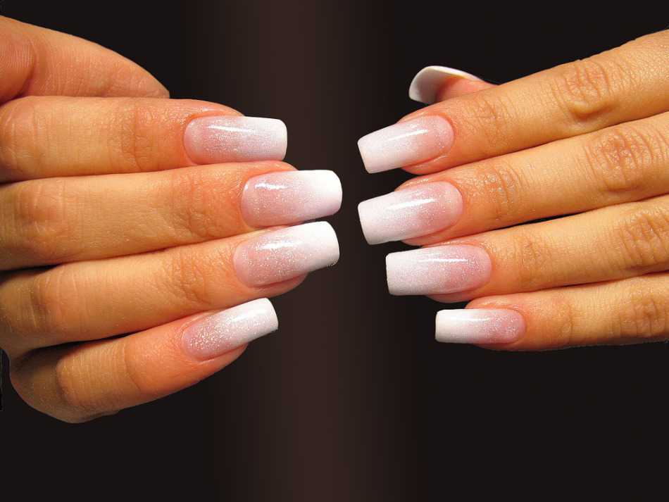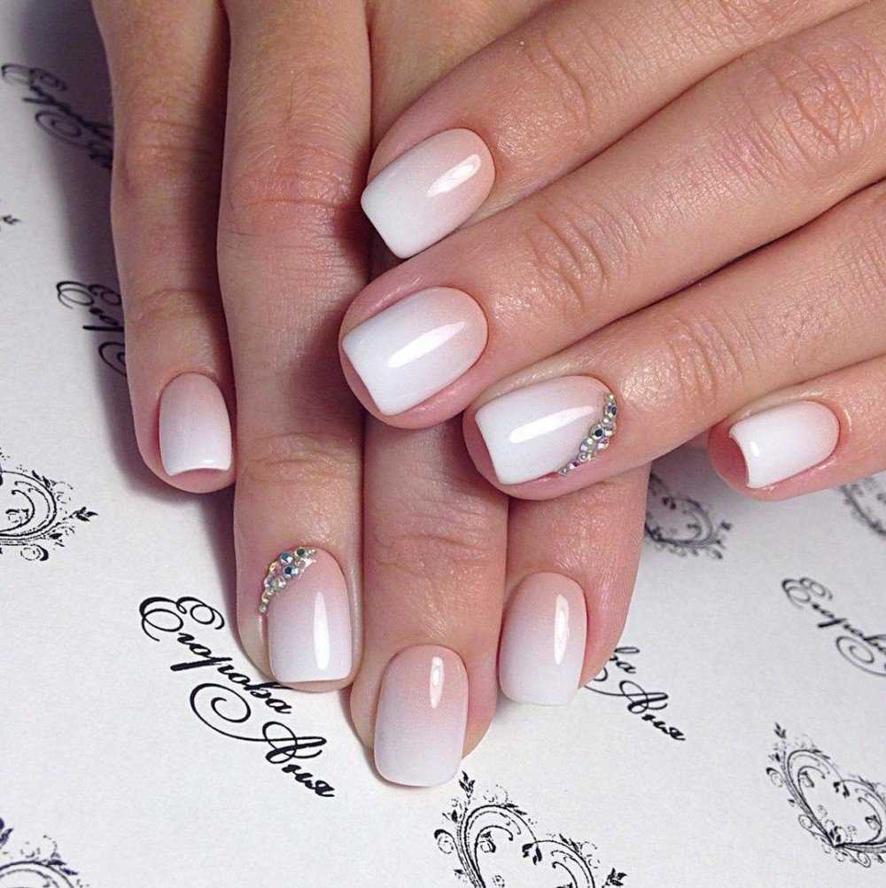 Бежевое белое омбре на ногтях коротких, длинных, острых