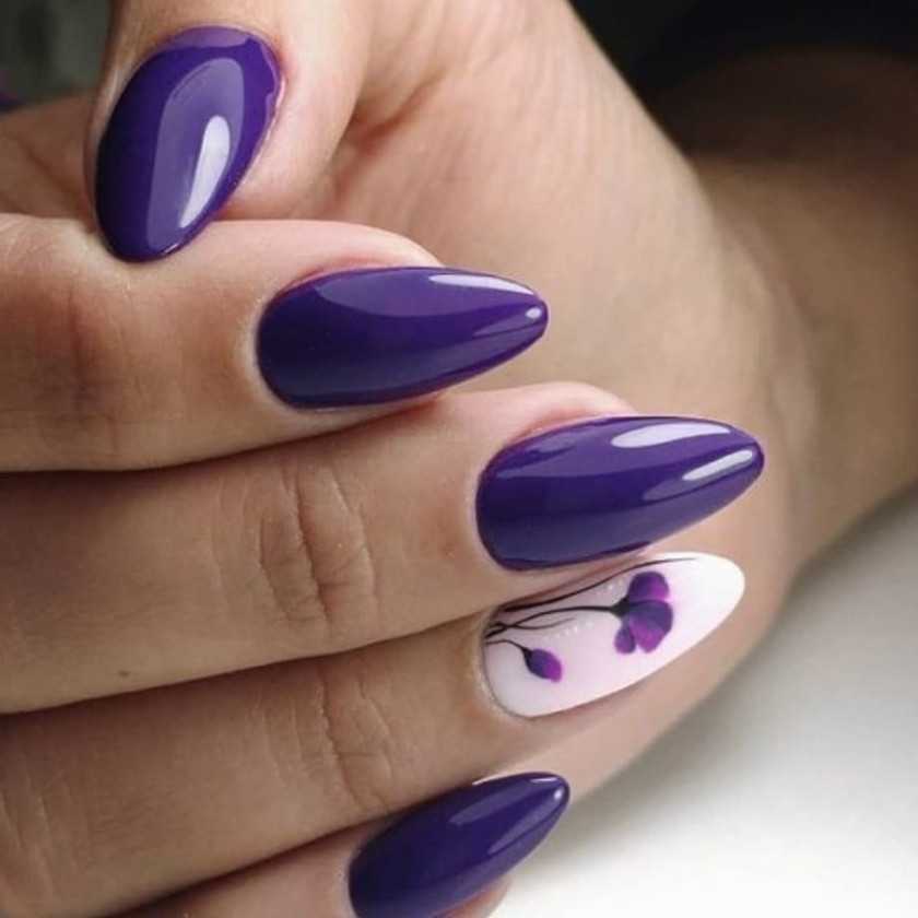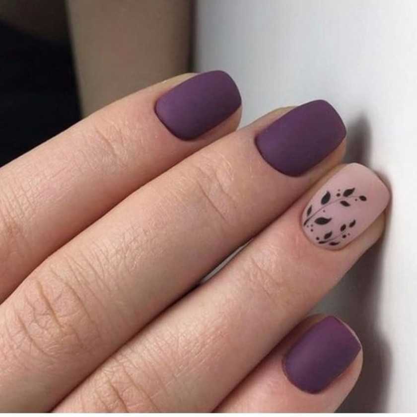 Разноцветный осенний маникюрФиолетовый маникюр с минималистичными цветамиМатовый фиолетовый маникюрФиолетовый маникюр с втиркой