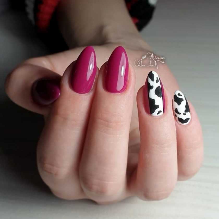 Сочные ногти цвета фуксия подойдут, как обладательницам коротких ногтей. так и тем у кого средняя длина. Дополнительный дизайн столь сочному оттенку не требуется, но если очень хочется чем-то украсить маникюр, пусть это будет простой рисунок черным гель-лаком.