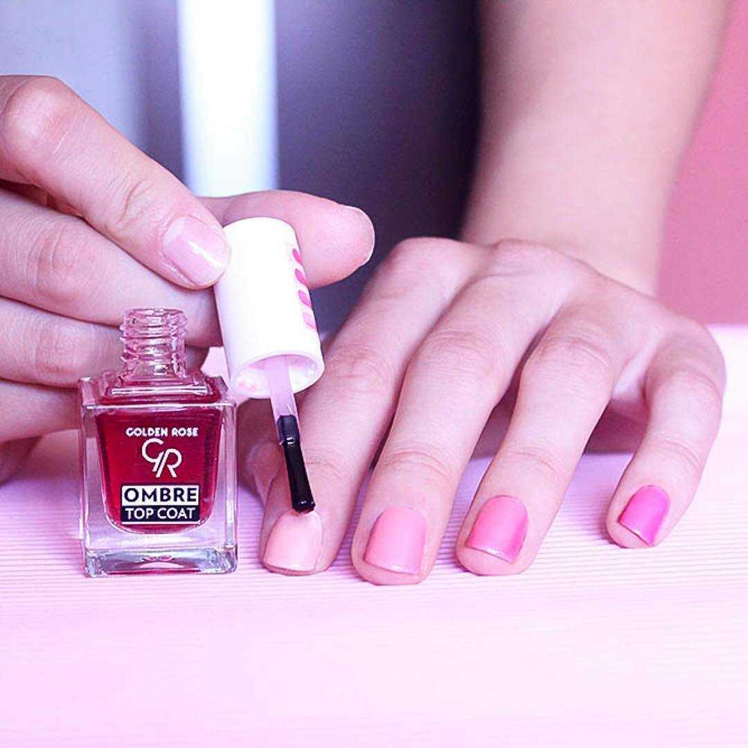 Используя ватную палочку и средство для удаления лака, излишки краски, попавшие на кожу, убирают. Последний слой, который наносят на градиент – это слой прозрачного лака.