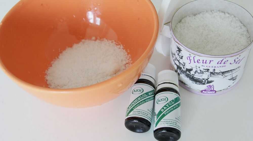 - смешать две столовые ложки соли с двумя столовыми ложками репейного или оливкового масла;