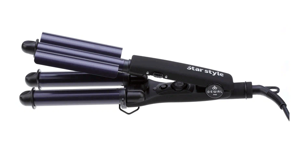 Ещё одна тройная плойка — DEWAL Pro 03-020 Star Style. Удобная тройная конструкция 22-19-22 мм в значительной мере сокращает время, необходимое для создания причёски. Качественное турмалиновое покрытие защищает волосы от нежелательных повреждений.
