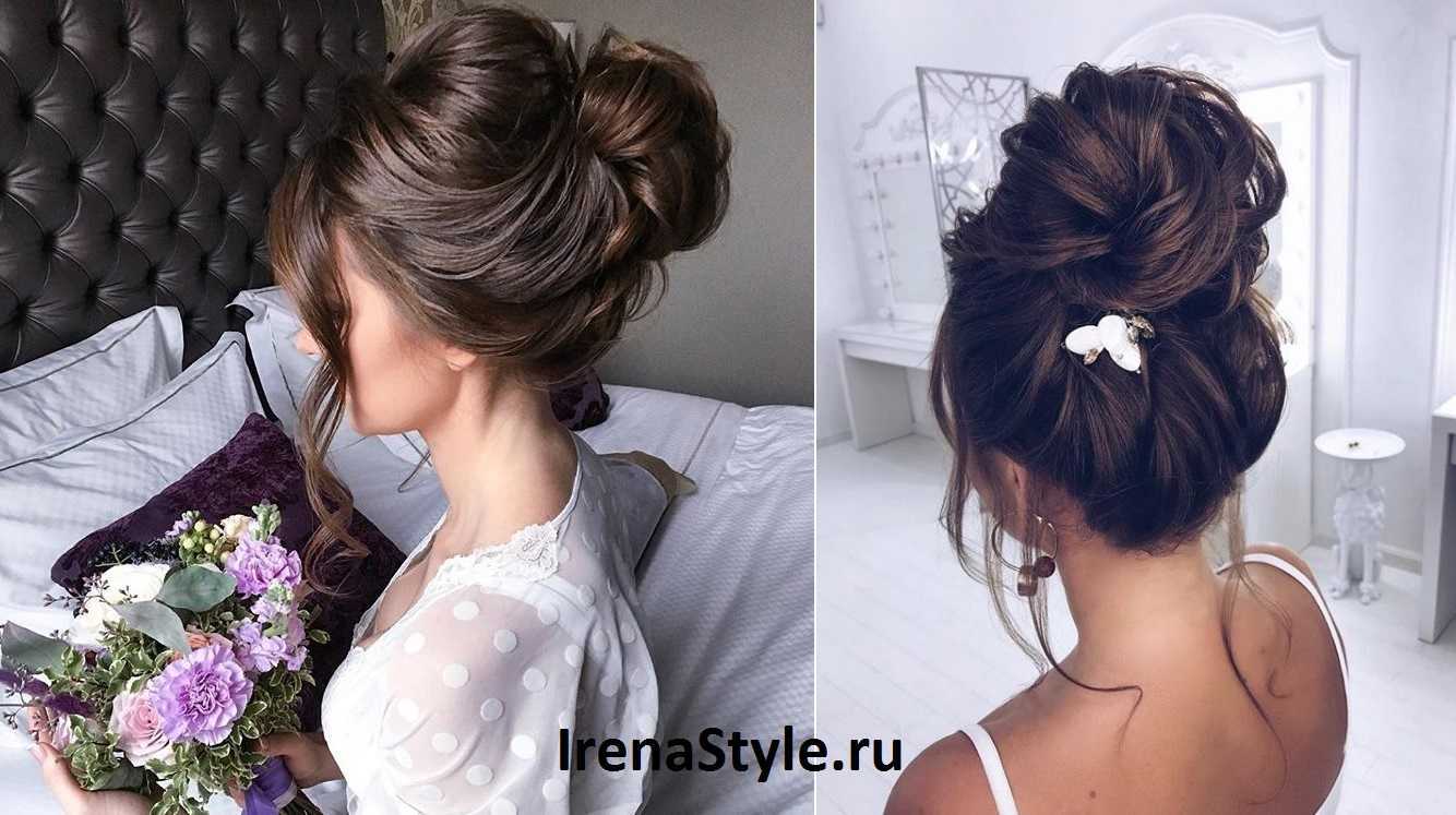 Стильная причёска на средние и длинные волосы с пучком и косой