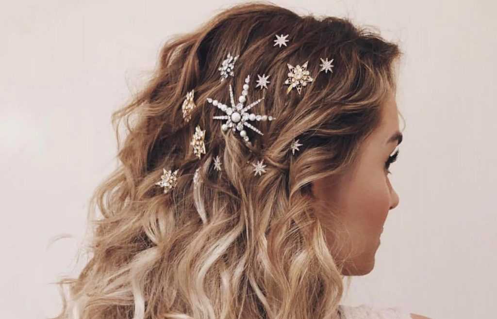 Поэтому в новогоднюю ночь можно дать волю своей фантазии и почувствовать себя и дерзкой, и женственной. Главное – не потерять свой стиль, а заколка с блестками, камушками или бусинками отлично подойдет к прическе на Новый 2022 год на средние волосы.