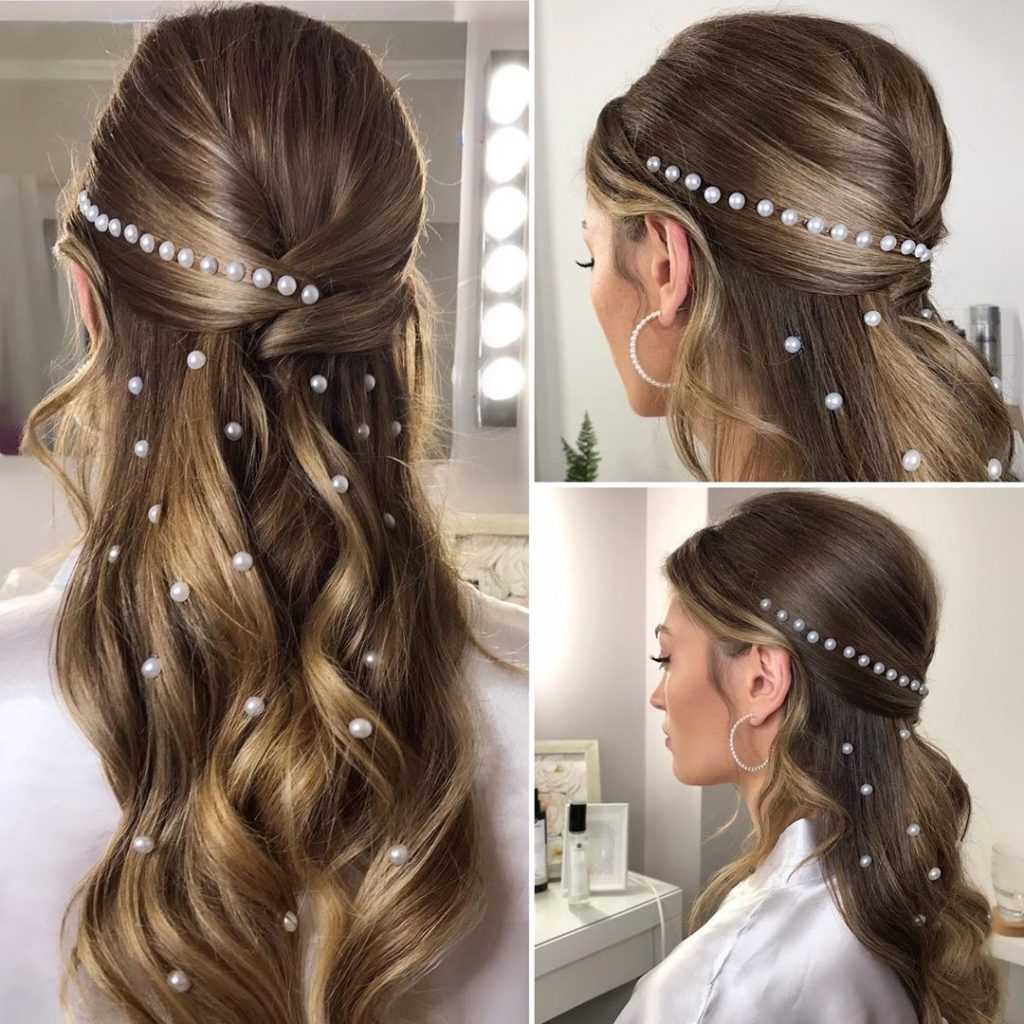 Прикрепить нити к волосам можно косметическим клеем или невидимками, такой декор подойдет как для локонов, так и для прямых прядей, а также для собранных причесок.