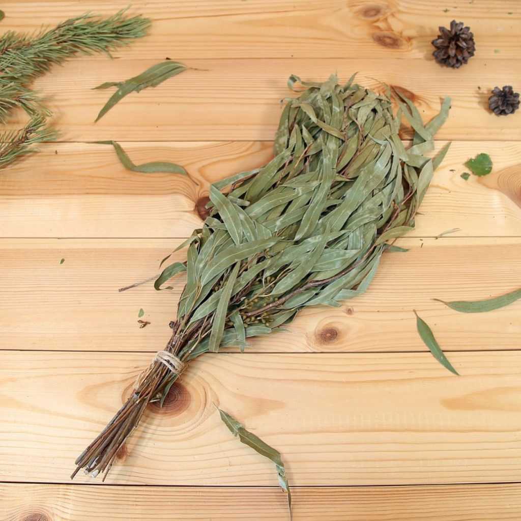 Этот экзотический вариант в русской бане используется редко, но содержит много эфирных масел, которые благотворно влияют на организм. Однако насыщенный эвкалиптовый аромат может выдержать не каждый человек, поэтому опытные банщики советуют добавлять только несколько веток этого дерева в березовые или дубовые веники.