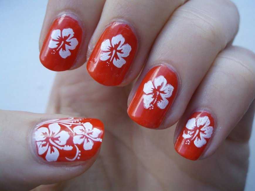 Короткими считаютсяногти, выступающие на 3 мм. Универсальная длина, смотрится с любым цветом и декором. Бесподобно смотрится техника «цветами наоборот». Один ноготь красится тем цветом, которым выполнены цветочки на остальных (белым по — чёрному). И наоборот, остальные покрывают основным цветом, тем, который выбран декором на одном ногте (чёрным по белому).