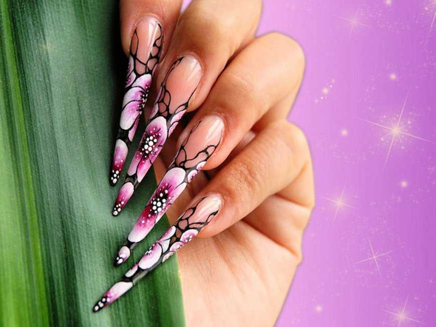 Характерной особенностью таких ногтей является их особая форма и длина. Ногти имеют очень острый кончик, а их длина колеблется от 1,5 до 5 см. Они напоминают острый, тонкий и заостренный нож. Такие ногти в своей самой длинной форме относятся к категории экстравагантного нейл-арта.