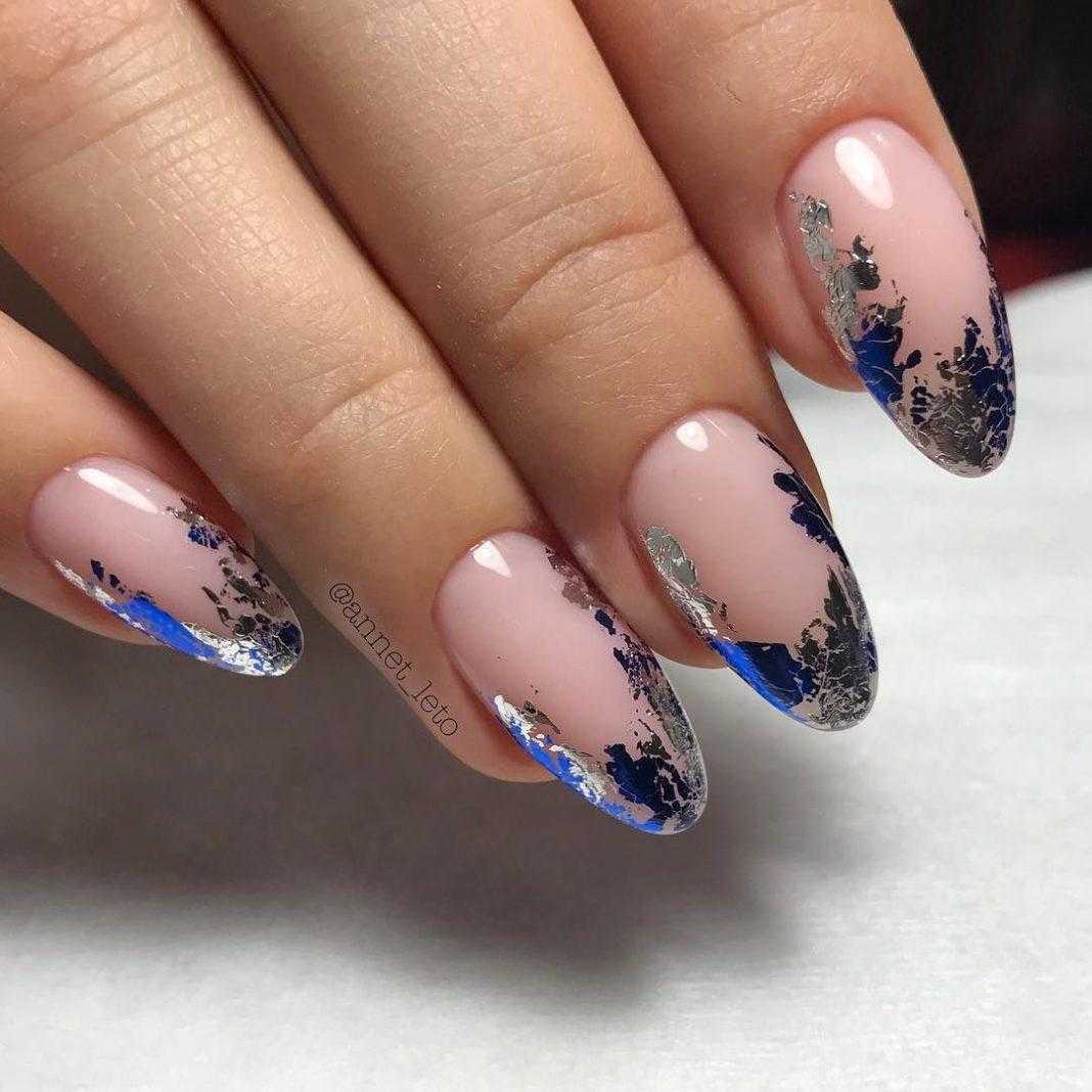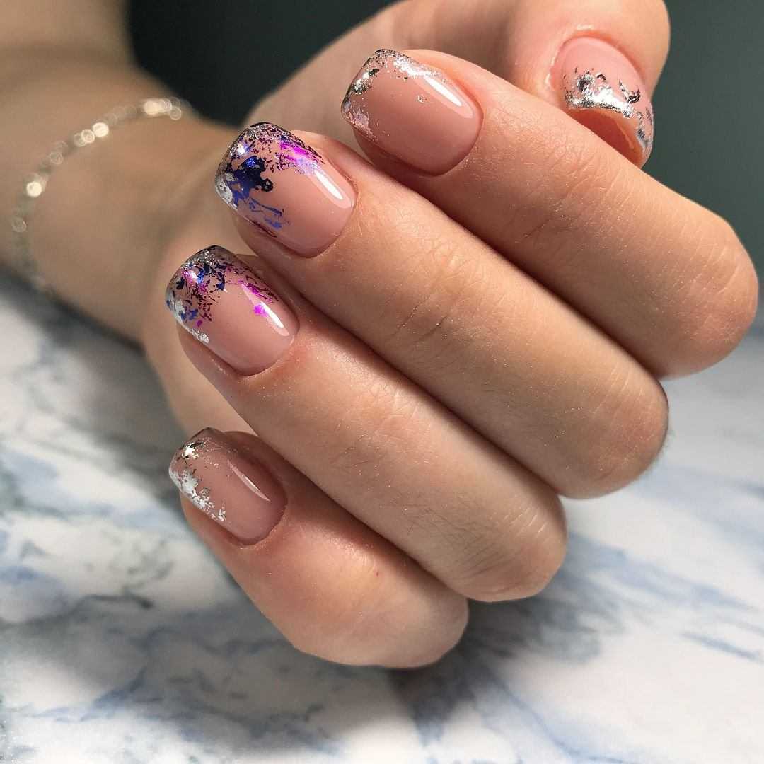 - В 2019 году появился модный тренд – объединение френча с другими техниками. К примеру, он отлично сочетается с битым стеклом.