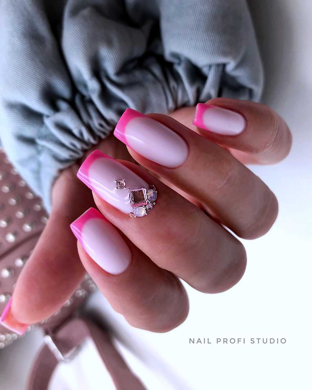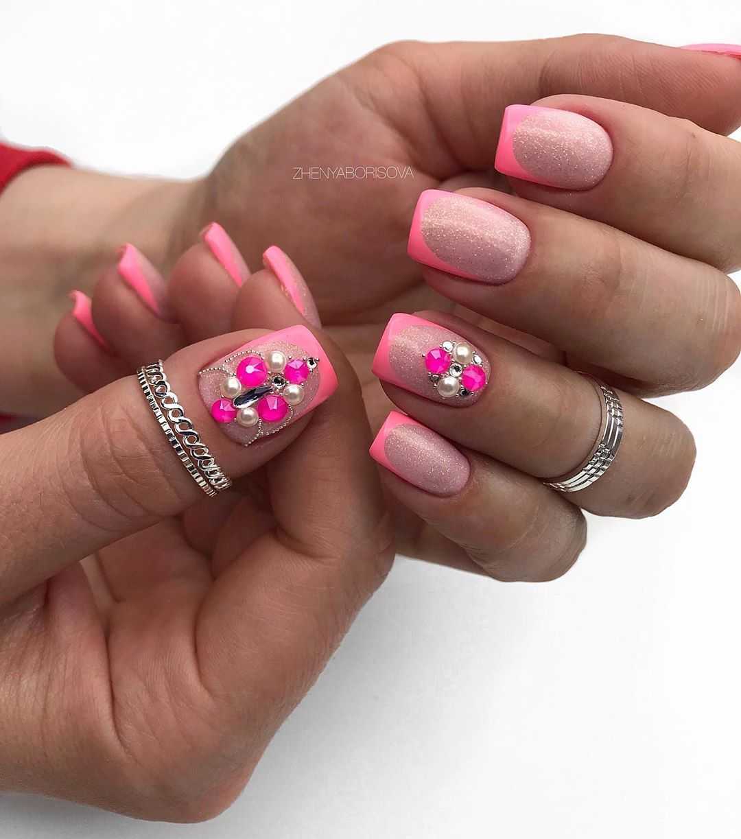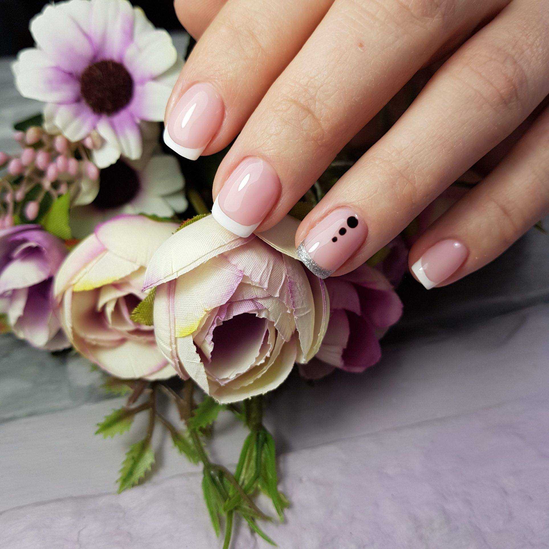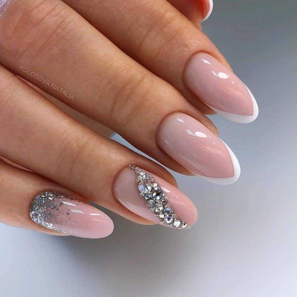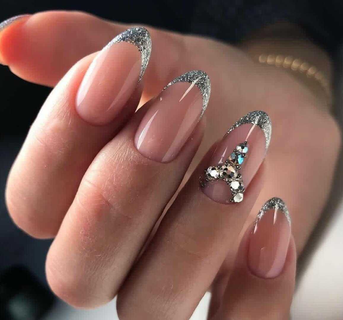 Дополнить классический френч могут декоры, к примеру, небольшие стразы, блески, но декор должен вводиться взвешенно, аккуратно.