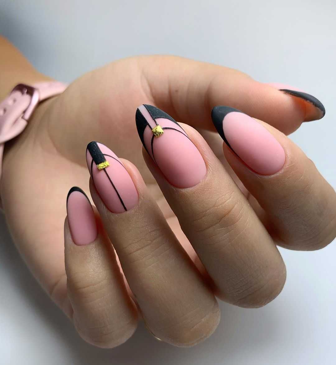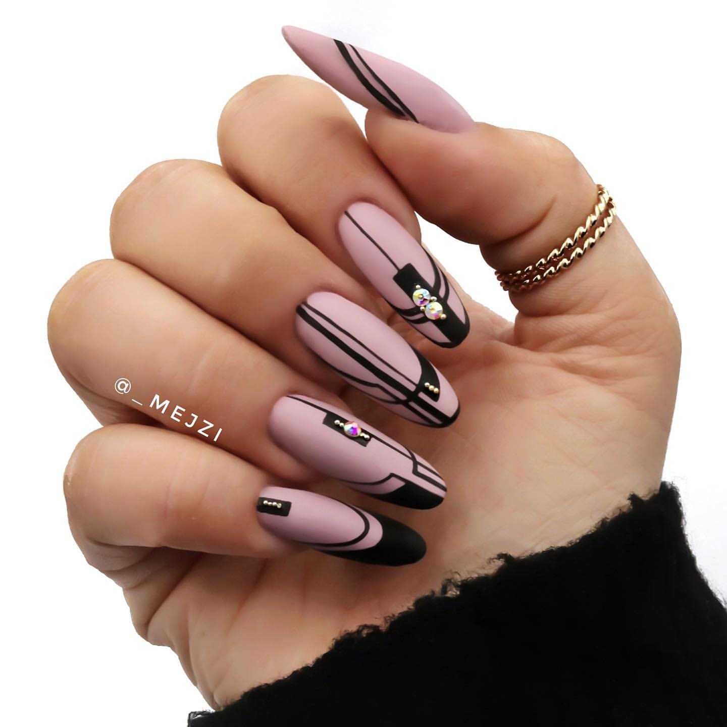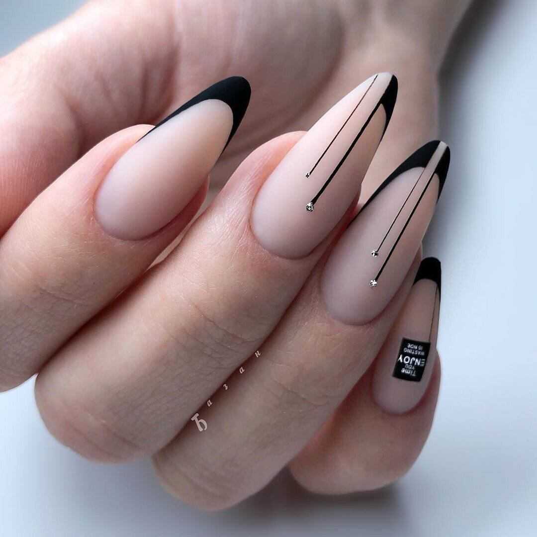 Надо сказать, что острые ногти – идеальный вариант для классических сочетаний. Стильные черный и белый превосходно его дополняют.