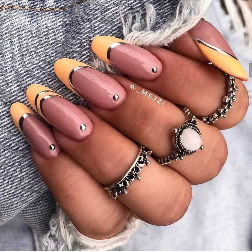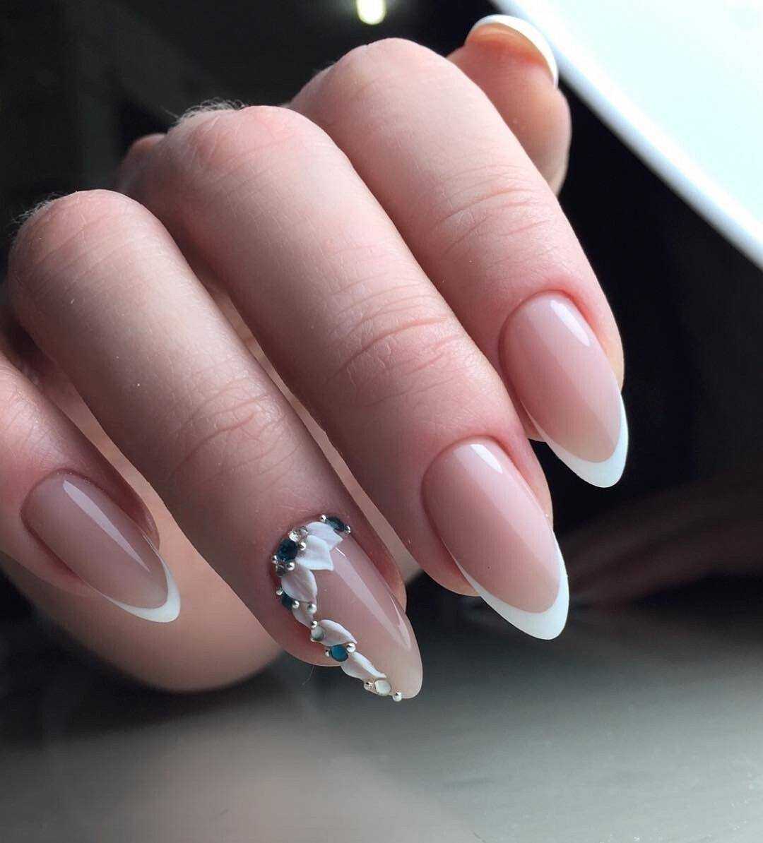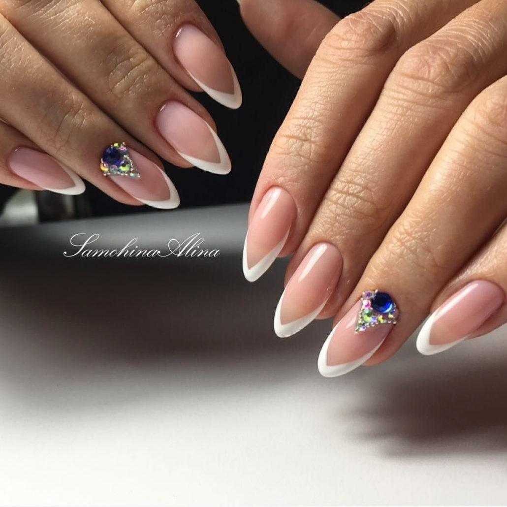 Острые ноготки в последнее время стали очень модными. Френч может стать идеальным дополнением и для них. Но помните, что с такой формой необходимо умеренно использовать цвета и яркие детали, чтобы маникюр не выглядел слишком уж вызывающе.
