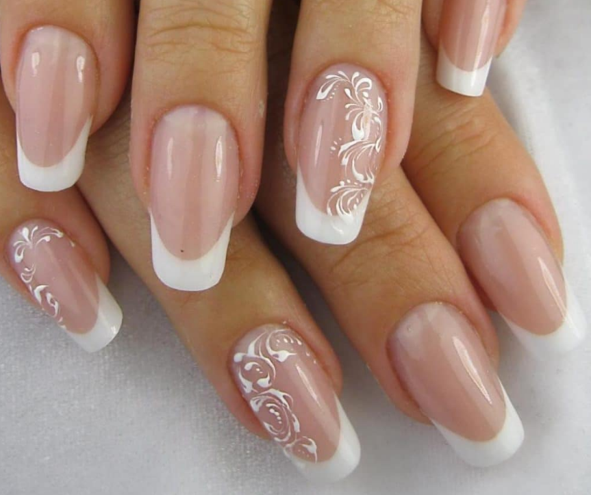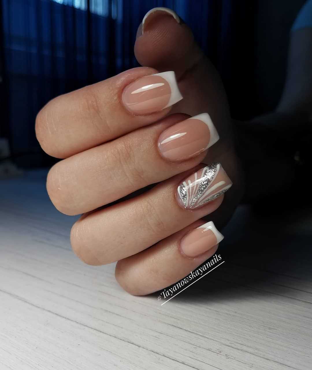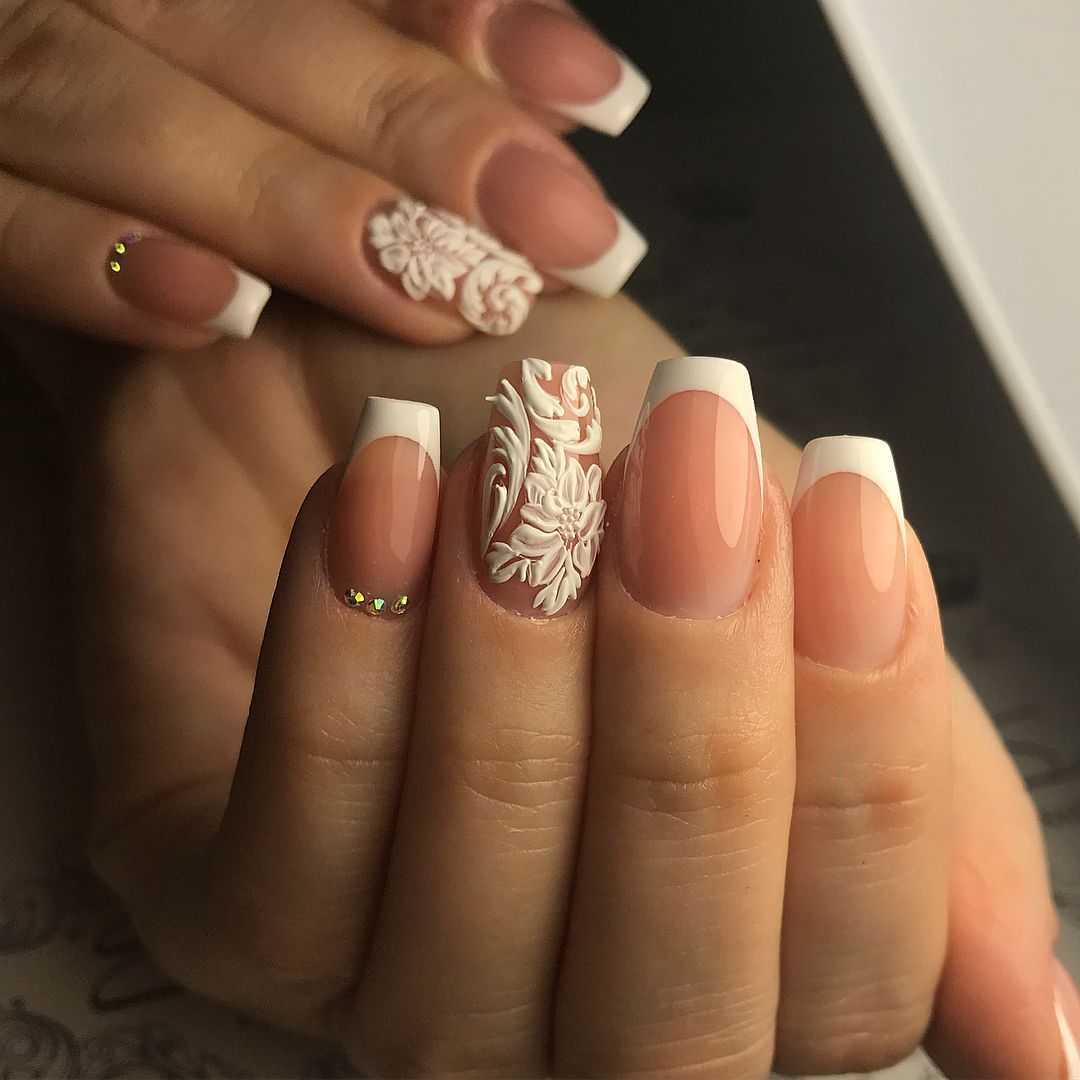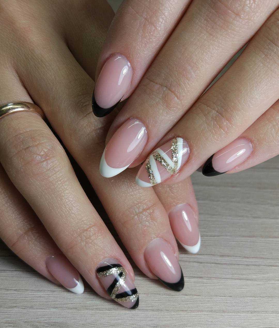 Френч маникюр с дизайном на разной форме ногтей в 2022 году