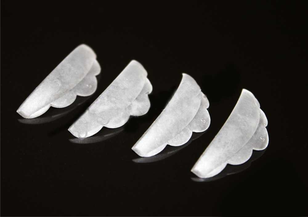 - Подушечки под нижнее веко. Изделия имеют форму полумесяцев и выполнены из силикона. Их подкладывают под ресницы нижнего века для защиты нежной кожи. При желании подушечки можно заменить патчами с увлажняющим или питательным действием.