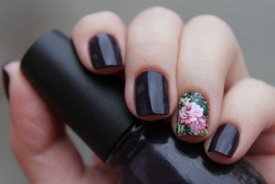 Если еще не выбран дизайн того, что нужно переводить на поверхность ногтей, стоит обратить на тренды, что актуальны в этом году – цветы, геометрические фигуры, фрукты. Выбирать лучше прозрачные основы с изображениями, чтобы было видно основной цвет лака.