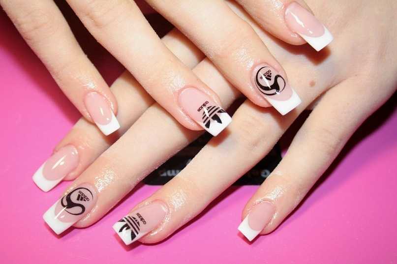 - Процедуру наращивания завершите нанесением готового рисунка, но здесь потребуется точность, поскольку двигать картинку на акриловом покрытии нельзя.