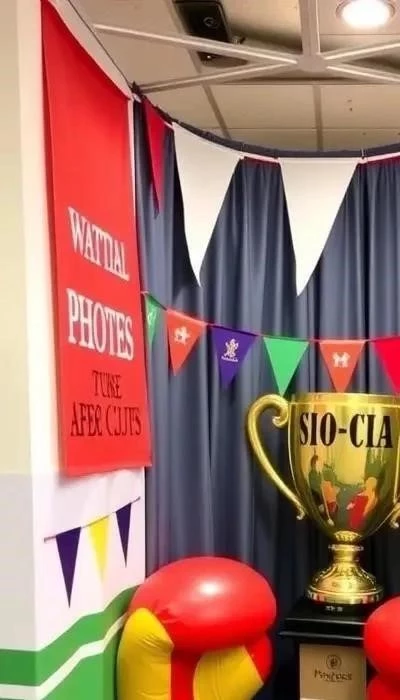 Организуйте фотозону с атрибутикой спортивных звезд: мячи, ракетки, медали, кубки и другие элементы декора. Предложите гостям сделать памятные фотографии.