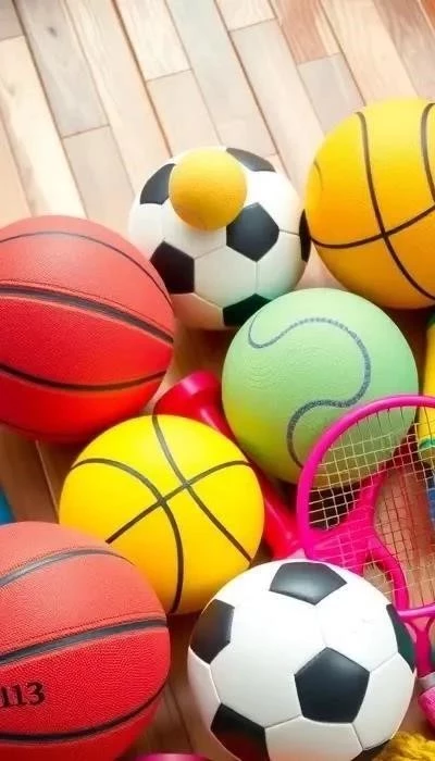 Фотозона с атрибутикой спортивных звезд: мячи, ракетки, медали