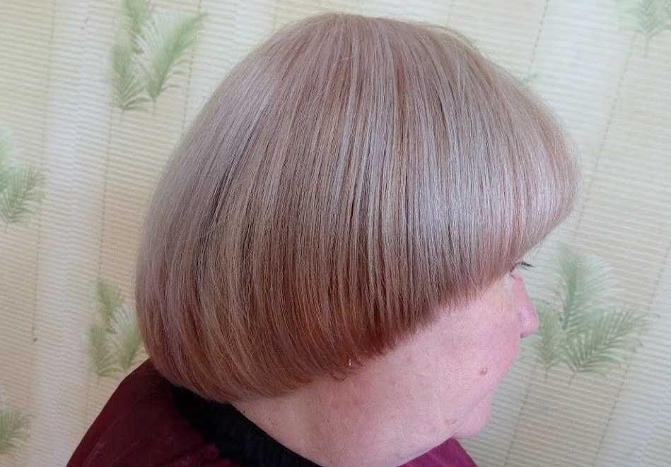 Стрижка напоминает шапочку. Она плавно удлиняется от челки к затылочной части, поэтому ее характерная черта – геометрически ровная линия. Прическа спрячет выделяющиеся уши, большой лоб, выпирающие острые скулы и квадратный тип лица. К сожалению, стрижки для пожилых женщин не во всех случаях включают в себя сессон.