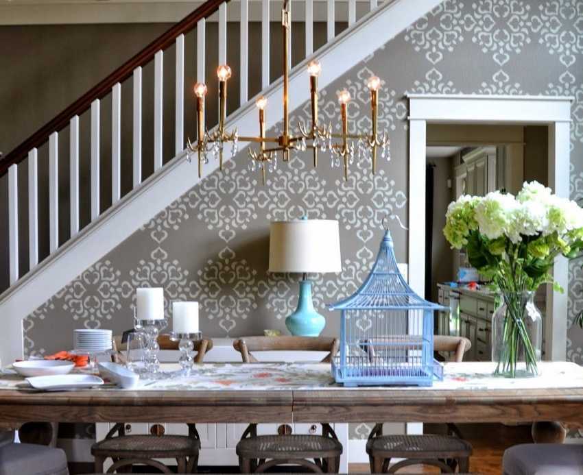 Применение трафаретов для украшения стен в помещении имеет определенные преимущества, особенно если это повторяющийся рисунок.