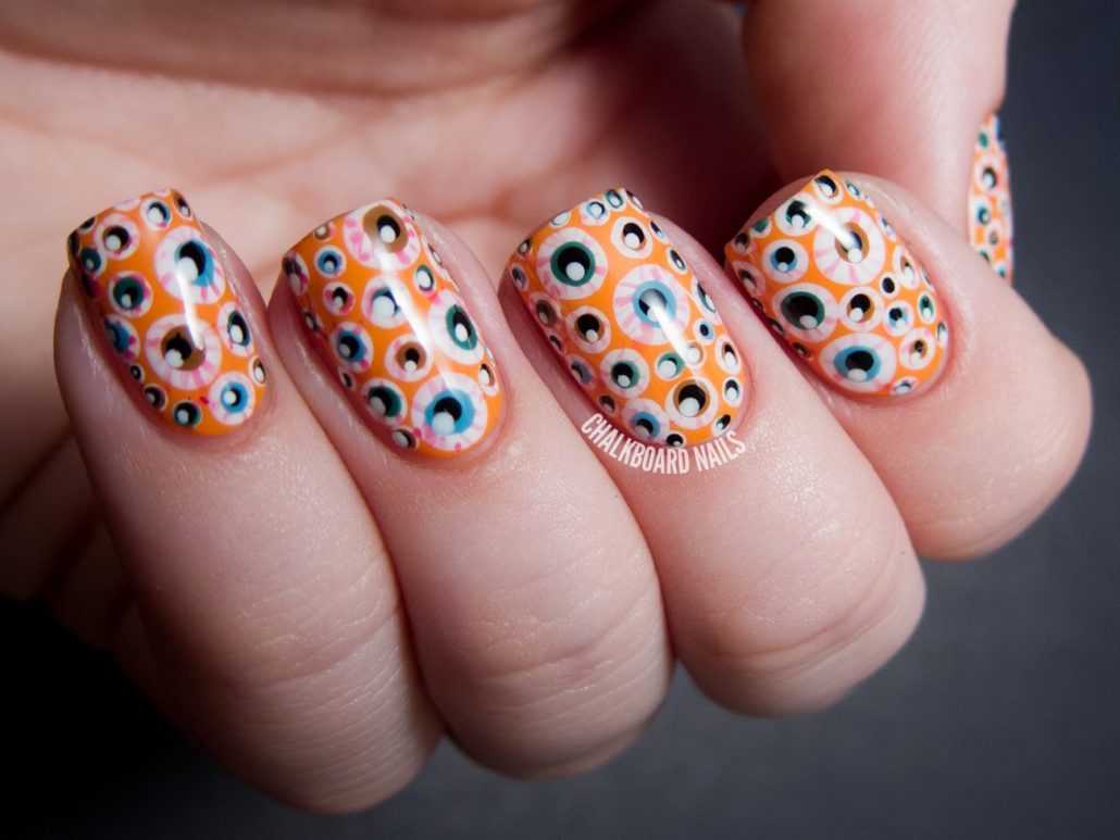 Довольно мило выглядят изображения глаз и губ в дизайне некоторых умельцев. Главное помнить, если вы решились на такой эксперимент, не переусердствуйте. Не стоит использовать украшения в виде вырванных глазных яблок. Смотрится такой маникюр жутковато, а нарисованные глаза с наклеенными ресницами, странно и неаккуратно. Правда, мастеров это не останавливает, и они придумывают новые варианты, украшая ногти усами, торчащими в разные стороны пальцами и другими частями тела.